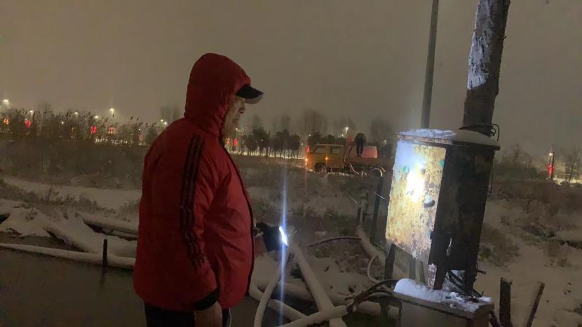 在冰天雪地的先鋒鈣液灘上有一抹亮麗的紅色,他就是鈣液班長(zhǎng)程輝,不懼冬日嚴(yán)寒,在風(fēng)雪中堅(jiān)守崗位兩天兩夜,早早的在先鋒灘上等候一輛輛改裝的除雪神器、灑水車;為他們加滿鈣液,奔赴除雪的第一線,他用實(shí)際行動(dòng)傳遞寒冬里的光與熱。