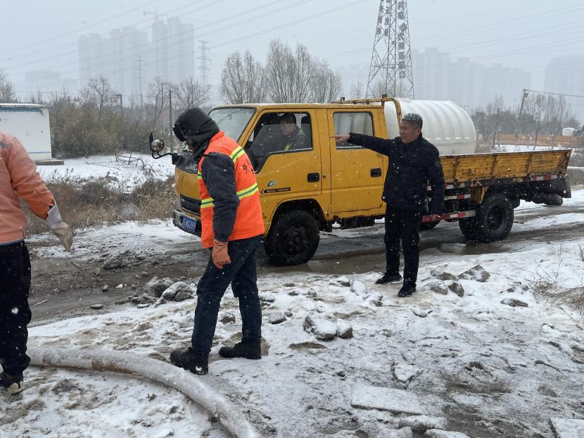 “兵馬未動(dòng),糧草先行”。2月21日,資源分公司緊急調(diào)動(dòng)鈣液儲(chǔ)存車,安排管理人員+工人跟車的模式,奔赴黃海大道、東方大道除冰掃雪的第一戰(zhàn)線,資源分公司負(fù)責(zé)人劉天義徹夜未眠,居中調(diào)度,及時(shí)對(duì)接車輛信息,安排灑掃鈣液路線。